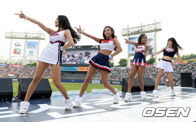 두산 치어리더가 화려한 공연을 펼치고 있다.