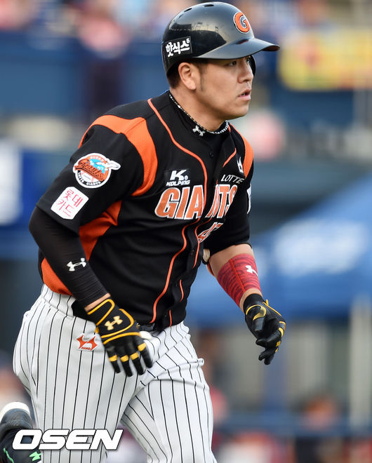 9일 오후 창원시 마산 야구장서 열린 '2015 타이어뱅크 KBO 리그' NC 다이노스와 롯데 자이언츠의 경기, 5회초 선두타자 롯데 강민호가 우월 솔로홈런을 날리고 있다.