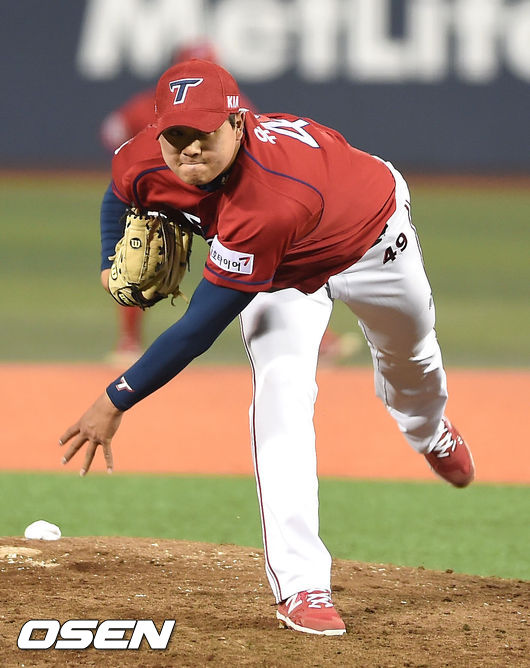 9일 오후 서울 목동구장에서 열린 '2015 타이어뱅크 KBO리그' 넥센 히어로즈와 KIA 타이거즈의 경기, 8회말 KIA 유창식이 힘차게 공을 뿌리고 있다.