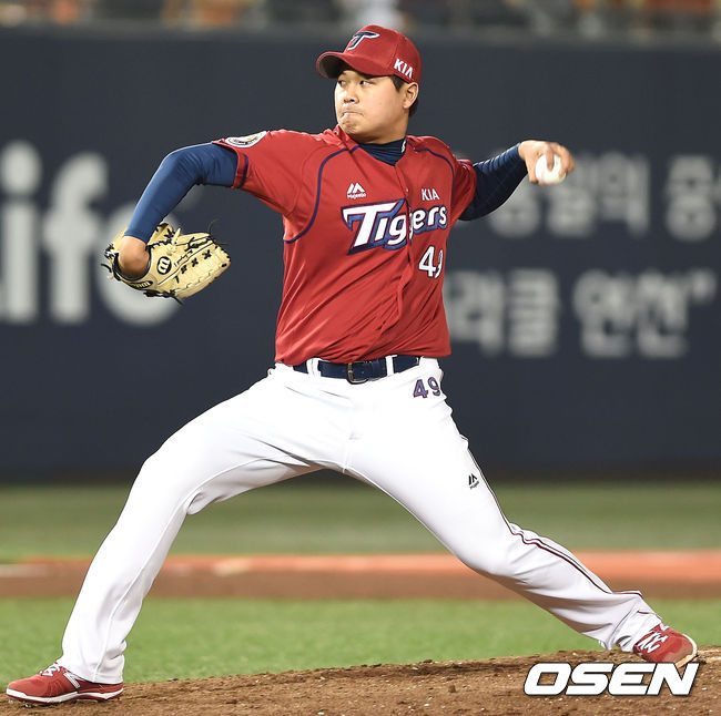 9일 오후 서울 목동구장에서 열린 '2015 타이어뱅크 KBO리그' 넥센 히어로즈와 KIA 타이거즈의 경기, 8회말 KIA 유창식이 힘차게 공을 뿌리고 있다.