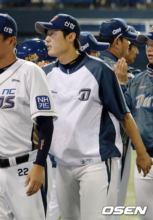 경기를 마치고 승리투수가 된 NC 이태양이 코치진들과 하이파이브를 하고 있다. / rumi@osen.co.kr