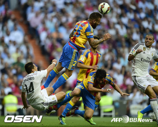 레알 마드리드는 전반 19분에도 코너킥 찬스서 공격에 가담한 수비수 페페의 회심의 헤딩 슈팅이 크로스바를 맞고 나오며 머리를 감싸쥐었다.