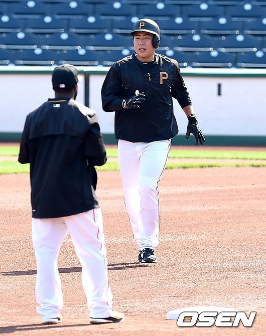 10일(한국시간) 미국 펜실베니아주 PNC파크에서 열리는 '2015 메이저리그' 피츠버그 파이어리츠와 세인트루이스 카디널스와의 경기를 앞두고, 피츠버그 강정호가 타격 훈련 중 그라운드를 달리고 있다.