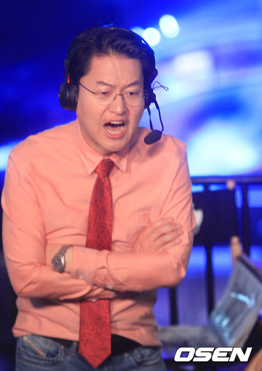 MSI 3일차 일정은 한국 시간으로 오전 5시 SK텔레콤과 프나틱의 경기를 시작으로, EDG와 AHQ의 4강전이 연이어 펼쳐진다. 온게임넷 전용준 캐스터가 프나틱의 맹렬한 공세에 위기를 맞자 일어서서 중계를 하고 있다. /scrapper@osen.co.kr