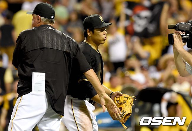 경기 종료 후 피츠버그 강정호와 클린트 허들 감독이 인사를 나누고 있다./dreamer@osen.co.kr