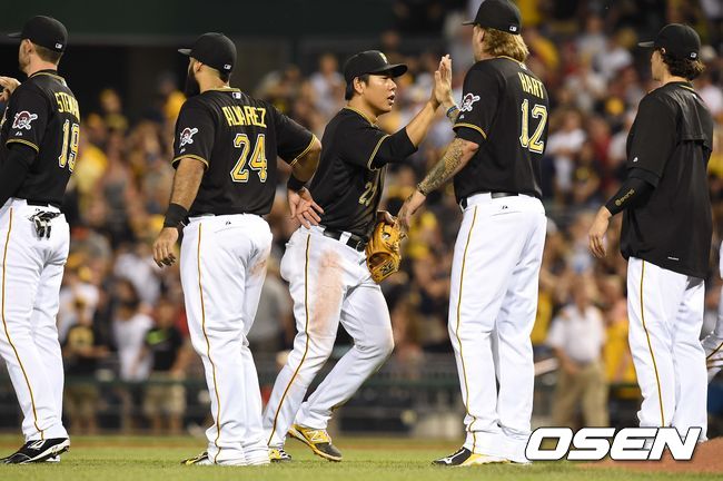 경기 종료 후 피츠버그 강정호가 동료들과 승리의 하이파이브를 나누고 있다./dreamer@osen.co.kr