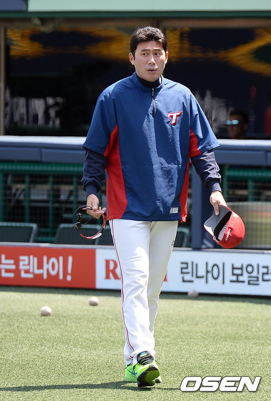 10일 오후 서울 목동야구장에서 열린 '2015 타이어뱅크 KBO 리그' 넥센 히어로즈와 KIA 타이거즈의 경기, 경기시작전 KIA 서재응이 그라운드로 들어서고 있다.