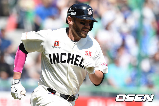 10일 오후 인천광역시 인천SK행복드림구장에서 열린 '2015 타이어뱅크 KBO 리그' SK 와이번스와 삼성 라이온즈의 경기 2회말 2사 만루 브라운이 2타점 적시타를 치고 달리고 있다.