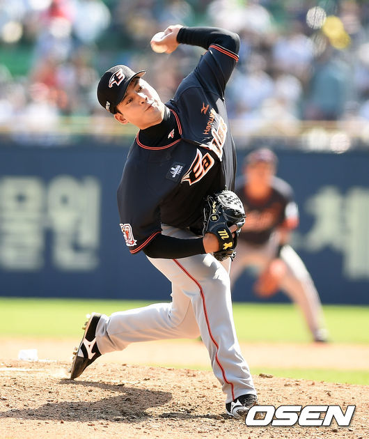 10일 오후 서울 잠실구장에서 열린 '2015 타이어뱅크 KBO리그' 두산 베어스와 한화 이글스의 경기, 4회말 한화 임준섭이 역투하고 있다.