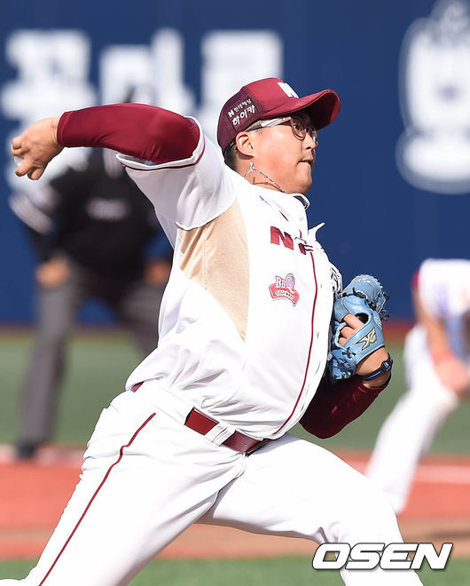 10일 오후 서울 목동야구장에서 열린 '2015 타이어뱅크 KBO 리그' 넥센 히어로즈와 KIA 타이거즈의 경기, 6회초 마운드에 오른 넥센 김영민이 힘차게 공을 던지고 있다.