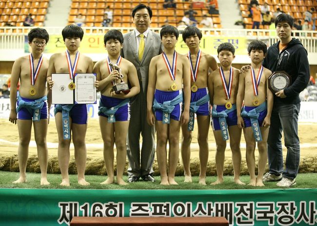 서울 대명초등학교는 10일 충청북도 증평군 증평종합스포츠센터에서 열린 ‘제16회 증평인삼배전국장사씨름대회’ 초등부 단체전 결승전(팀 간 7전4선승제/ 개인 간 3전2선승제)에서 호서남초등학교를 4-2로 물리쳤다.