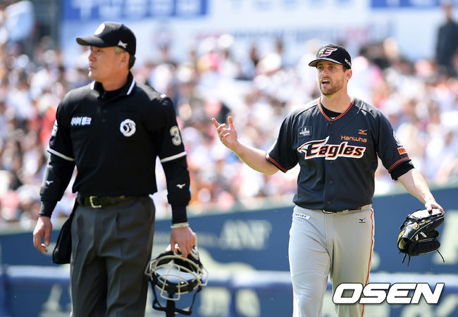 흥분을 주체하지 못한 미치 탈보트(32, 한화 이글스)가 경기를 망쳤다.