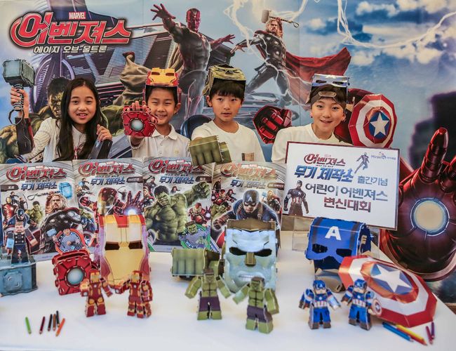 아동출판 전문 '㈜미래엔 아이세움'이 개최한 이번 이벤트는 어벤져스의 주요 등장인물인 아이언맨, 캡틴 아메리카, 토르, 헐크 등 주인공 4인방의 캐릭터를 활용한 것으로, 다양한 형태의 놀이책으로 구성한 '어벤져스 무기제작소' 출간을 기념했다.