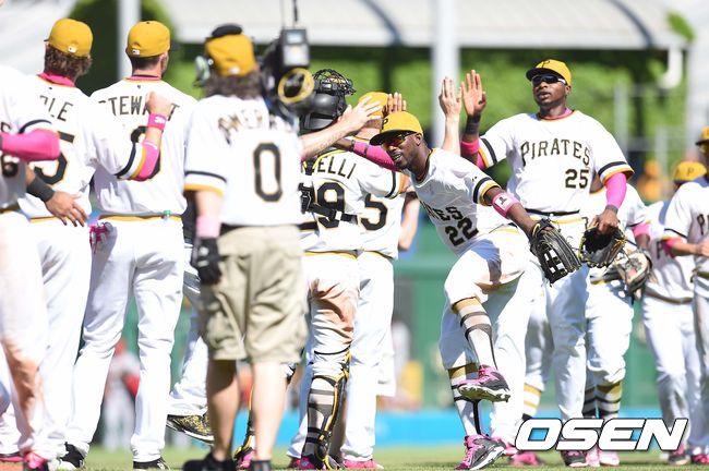 경기 종료 후 피츠버그 선수들이 승리의 하이파이브를 나누고 있다./dreamer@osen.co.kr
