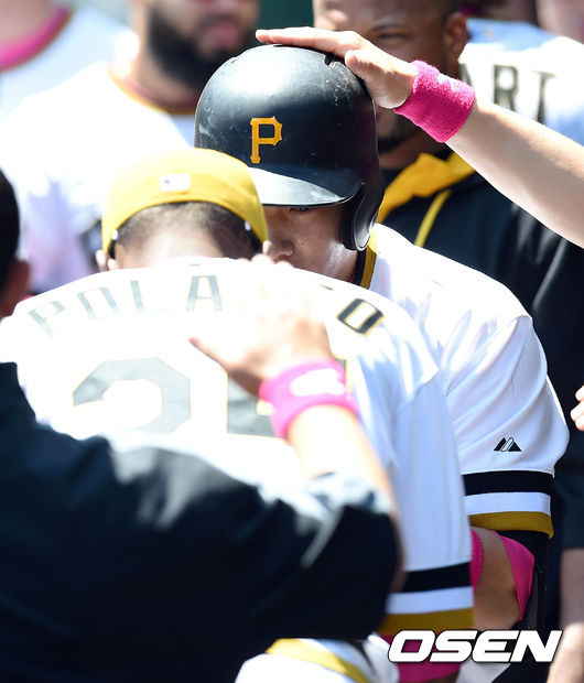 강정호가 홈런을 치고 들어오자 폴랑코가 폴더인사로 맞이하고 있다./dreamer@osen.co.kr