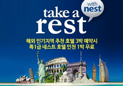 호텔조인(www.hoteljoin.com)에서는 해외 인기 지역 26곳의 대표 럭셔리 호텔을 소개하고, 3박 이상 예약하는 모든 고객에게 인천 네스트 호텔 1박을 무료로 제공하는 빅 프로모션을 진행한다.
