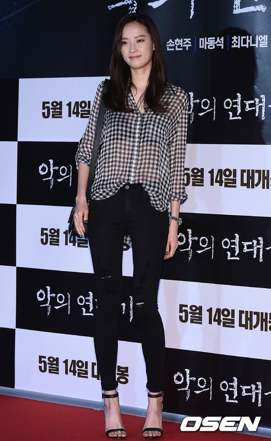 11일 오후 서울 성동구 CGV 왕십리점에서 열린 영화 '악의 연대기' VIP 시사회에서 혜박이 포토타임을 갖고 있다.