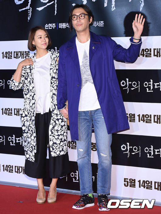 11일 오후 서울 성동구 CGV 왕십리점에서 열린 영화 '악의 연대기' VIP 시사회에서 배우 심이영, 최원영 부부가 포토타임을 갖고 있다.