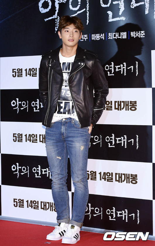 11일 오후 서울 성동구 CGV 왕십리점에서 열린 영화 '악의 연대기' VIP 시사회에서 2AM 진운이 포토타임을 갖고 있다.