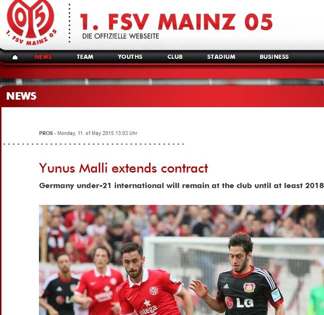 마인츠는 지난 11일(한국시간) 공식 홈페이지를 통해 올 시즌 계약이 만료되는 말리와 2018년 6월까지 3년 재계약했다고 밝혔다.