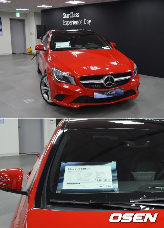 3900만 원의 가격표가 붙은 CLA 200 CDI. 아래 사진은 메르세데스-벤츠 코리아의 공식 딜러사인 한성자동차 안종부 상무가 워크베이에서 중고차를 진단하는 과정을 시연하는 모습.