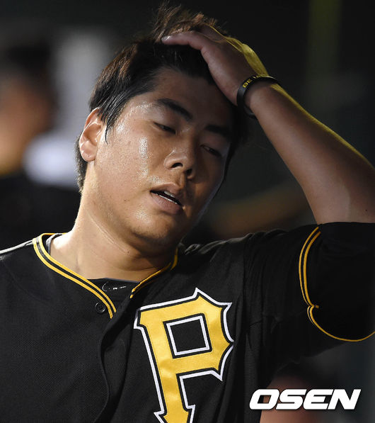 12일(한국시간) 미국 펜실베니아주 필라델피아 시티즌스 뱅크 파크에서 열리는 '2015 메이저리그' 필라델피아 필리스와 피츠버그 파이어리츠의 경기,4회초 무사 선두타자로 나선 강정호가 유리한 볼카운트에서 투수 앞 땅볼을 치고 더그아웃에서 아쉬워하고 있다.