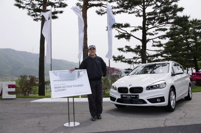 액티브 투어러를 홀인원 부상으로 받은 박재홍 씨. /BMW코리아 제공.