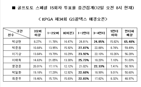 국내 골프팬들은 KPGA투어 제34회 GS칼텍스 매경오픈에서 박상현의 언더파 가능성을 높게 예상했다.