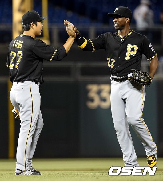 경기 종료 후 피츠버그 강정호가 앤드류 맥커친과 승리의 하이파이브를 나누고 있다./dreamer@osen.co.kr