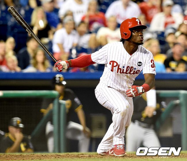 9회말 필라델피아 공격 선두타자로 나선 오두벨 에레라가 추격의 우중간 솔로포를 날리고 있다./dreamer@osen.co.kr