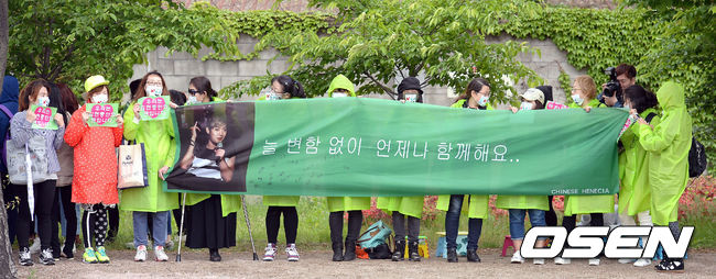 팬들이 부대 앞에서 김현중을 기다리고 있다.