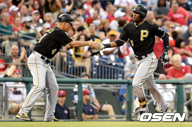 3회초 피츠버그 공격 2사 1, 2루 상황 스탈링 마르테가 좌중간 역전 스리런포를 날리고 그라운드를 돌며 소필드 3루 코치와 인사를 나누고 있다./dreamer@osen.co.kr