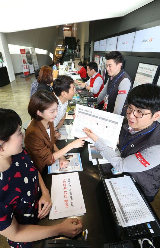 광화문 올레스퀘어 매장에서 고객들이 '데이터 선택 요금제' 가입 문의하고 있는 모습. / KT 제공