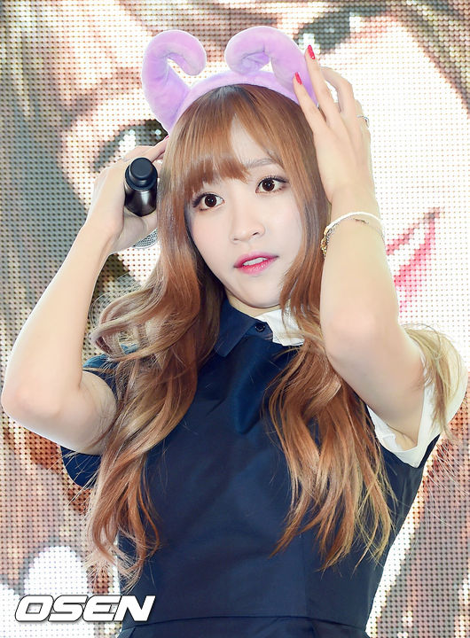 12일 오후 서울 영등포 타임스퀘어에서 진행된 영화 '홈' 절친 라이브 쇼케이스에서 EXID 하니가 머리띠를 쓰고 있다.