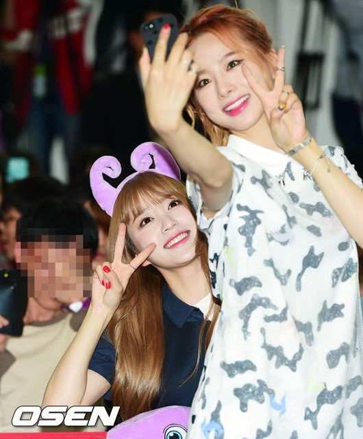 12일 오후 서울 영등포 타임스퀘어에서 진행된 영화 '홈' 절친 라이브 쇼케이스에서 EXID 솔지와 하니가 포즈를 취하고 있다.