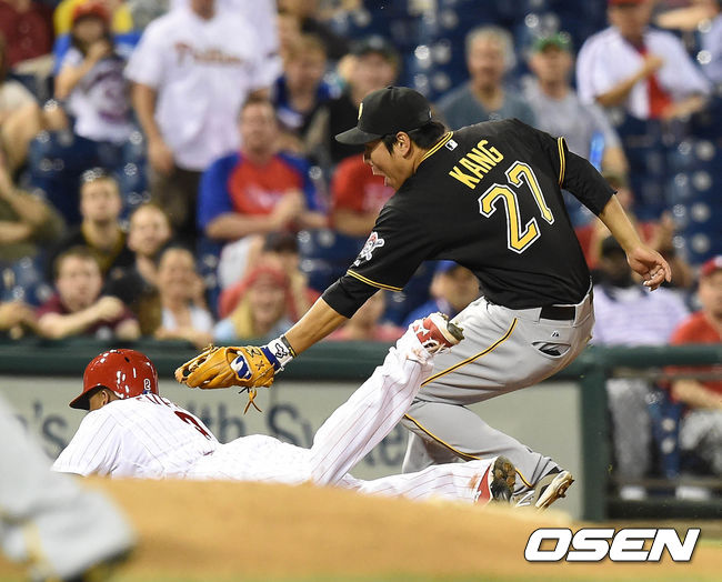 강정호는 필라델피아 필리스와 원정경기에 6번타자 유격수로 선발 라인업에 이름을 올렸다. 앞선 3경기에는 3루수로 출장했으나 이날은 조디 머서가 벤치에서 대기하고 강정호가 유격수로 자리를 옮겼다. 강정호는 올 시즌 유격수로 9경기(선발 6경기)째 출전한다.