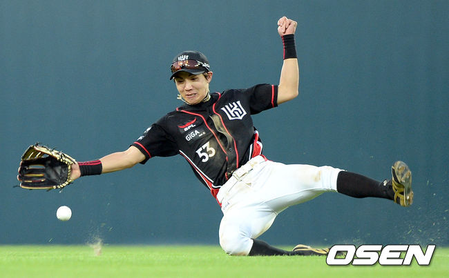 3회말 무사 kt 이대형이 KIA 강한울의 타구를 잡으려다 공을 놓치고 있다.