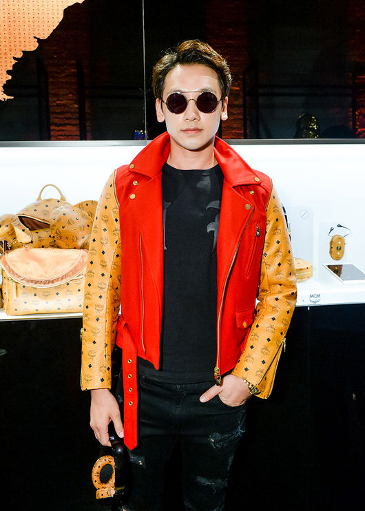 MCM X 비츠바이닥터드레 콜래보레이션 제품과 런칭 행사에 참석한 비. /MCM 제공.