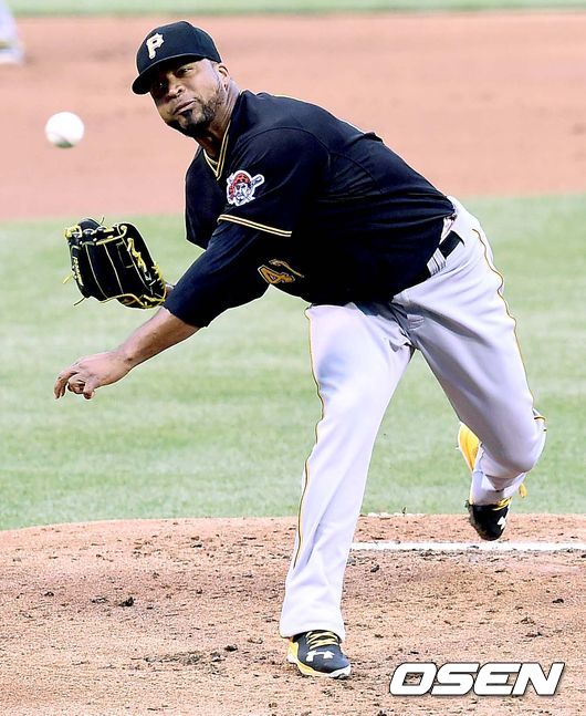 피츠버그 선발 프란시스코 리리아노가 힘차게 공을 뿌리고 있다.