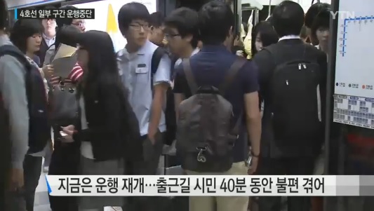 [OSEN=이슈팀] 인명사고로 지하철 4호선의 운행이 중단됐었다.
