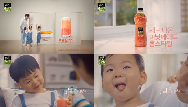 삼둥이들의 주스먹방은 “냠냠~냠냠냠”이라는 가사가 리드미컬하게 반복되는 배경음악과 함께 잘 어우러져 ‘미닛메이드 홈스타일’의 특징을 그대로 전해준다.