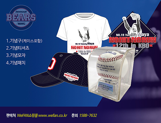 두산 베어스가 14일 유네스키 마야의 '노히트노런(No Hit No Run)' 기념 상품을 출시했다.