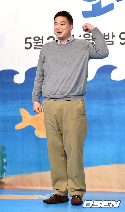 전 농구선수 현주엽이 포토타임을 갖고 있다.