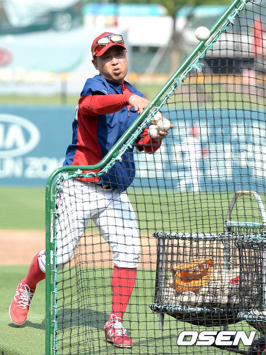 경기전 KIA 박기남이 배팅볼을 던지고 있다.