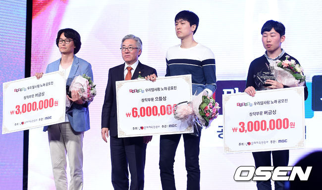 김종덕 문화체육관광부 장관이 우리말사랑 노래 공모전 수상자들과 기념촬영을 하고 있다.