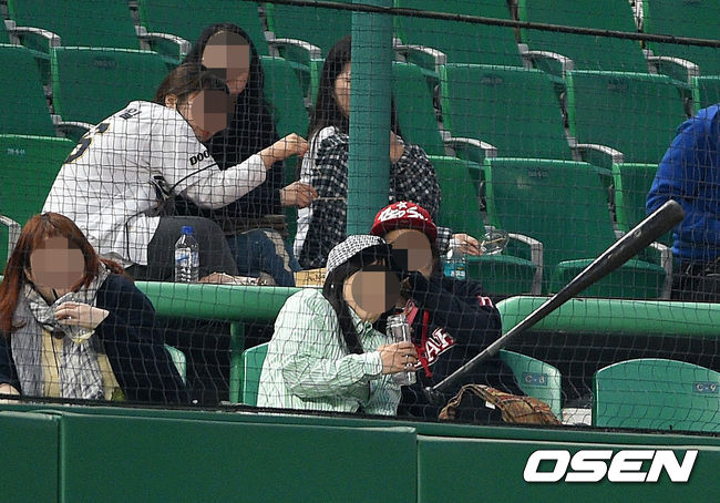 3회말 1사 1루 SK 최정이 놓친 배트에 관중들이 놀라며 피하고 있다.