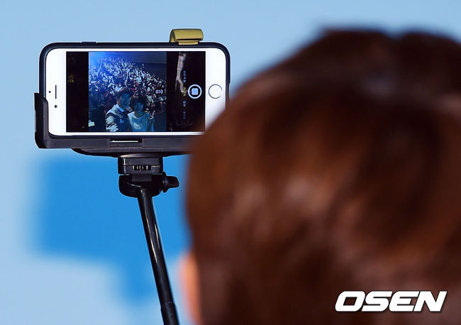 14일 서울 합정동 메세나폴리스 롯데카드 아트센터 아트홀에서 진행된 영화 '은밀한 유혹'(윤재구 감독) 쇼케이스에서 배우 유연석과 임수정이 셀카퐁으로 셀카를 찍고 있다.