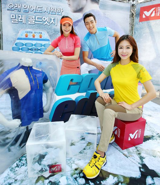 프랑스 정통 아웃도어 브랜드 밀레(㈜MEH, 대표 한철호)가 올해 첫선을 보이는 자체 개발 냉감 소재 ‘콜드 엣지(Cold Edge)’ 티셔츠를 출시한 것을 기념, 14일 광화문 청계 광장에서 쇼케이스를 진행했다.