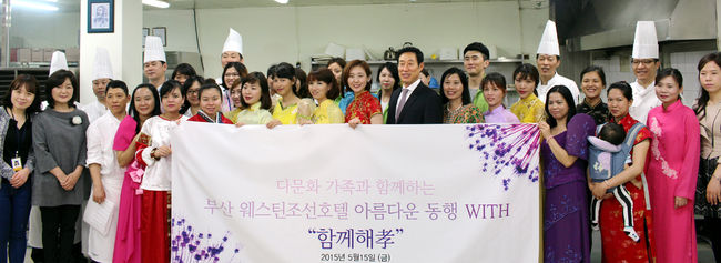 부산 웨스틴조선호텔은 가정의 날인 15일 수영구 망미동에 소재한 로사종합사회복지관에서 다문화가족과 함께 ‘아름다운 동행 WITH 함께해 孝’ 나눔 행사를 진행했다.