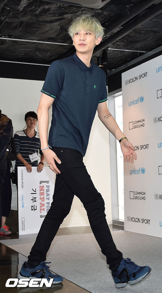15일 오후 서울 광진구 자양동 건대 커먼그라운드에서 진행된 ‘네팔 도네이션 프로젝트’ 포토월 행사, 엑소의 찬열이 입장하고 있다.